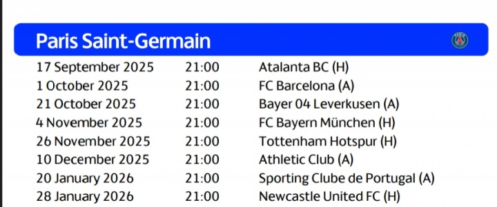 08月30日讯 欧足联官方公布欧冠联赛阶段赛程,巴黎首战亚特兰大,第二轮客战巴萨,第五轮对阵拜仁!